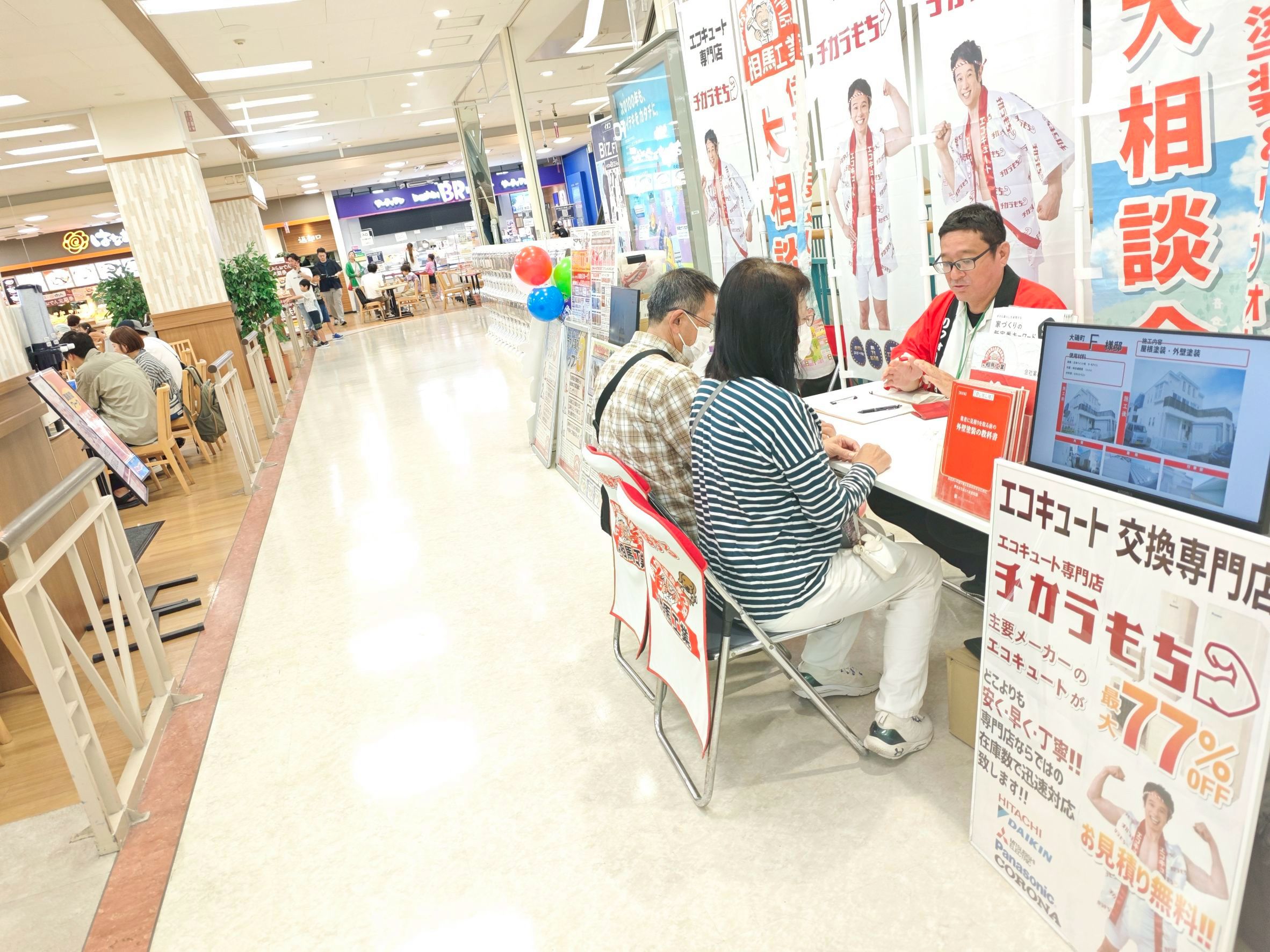 本日はイオン茅ケ崎中央店3Fフードコート前で行いました、「住宅塗装&リフォーム大相談会」に今回も多くの方がお越しくださいました。