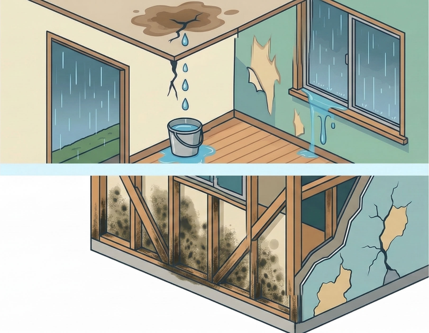 屋根・外壁・ベランダなど、雨漏りの原因は一つではありません。
